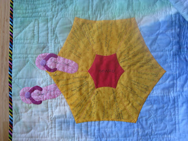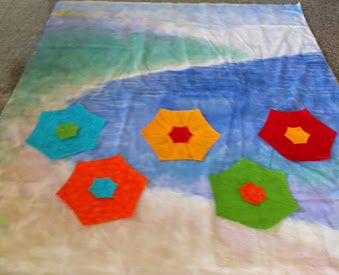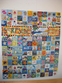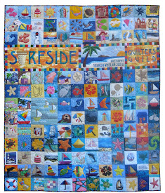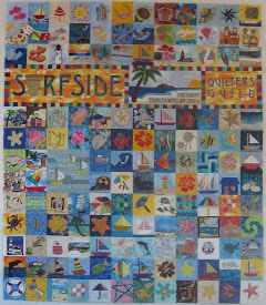 The traditional quilt for the outgoing President of Surfside Quilters Guild. Theme: Beach. Color: Bright.