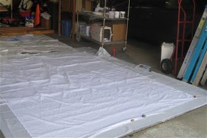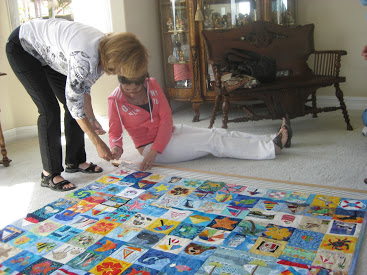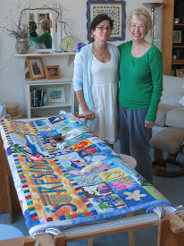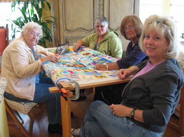 Back at Mary Freedman's to baste the quilt. Nancy Bloyer, Mary Freedman and Becky Reed.