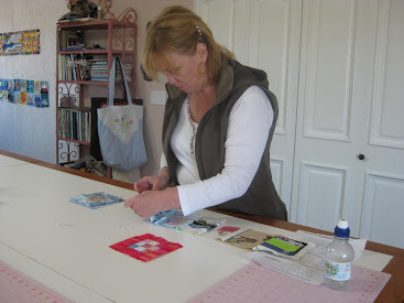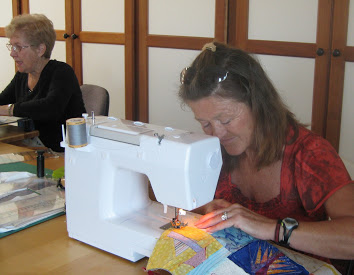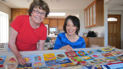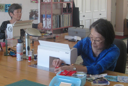 Maggie Bell and Hiroko Moriwaki trimmed blocks at Nancy Ota's, March 8.