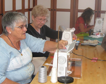 Marjie Butterworth pinning and Barbara McFarland helping a sewer.