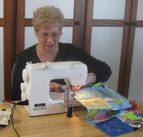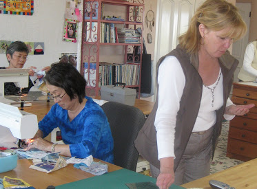 Busy sewers, Nancy Ota, Hiroko Moriwaki and Janis Schonfeld.