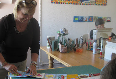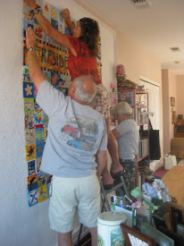 March 9 at Mary Freedman's studio, Judy Dunlap is placing blocks on the design wall.