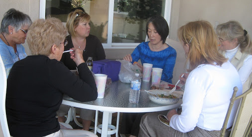 Nice lunch break on Mary Freedman's patio, some wanted shade.