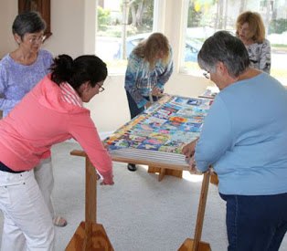 Basting by hand, Barbara Ann Christensen, Becky Reed, Sharon Dowlan and Nancy Bloyer.
