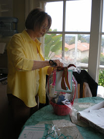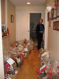 Kathie Bellamy checking out the baskets after the first day of wrapping. We did have two more mornings of fun at the Wrap House.