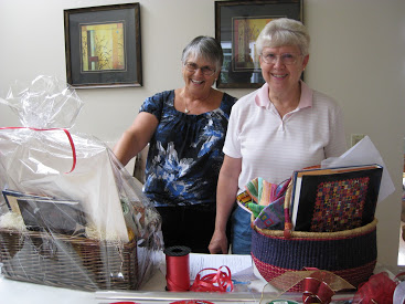 Sharon Whelan is our President. Joann Bishop is our Program VP. Joann is preparing the chance bags decorated by Jeannie Bassett.