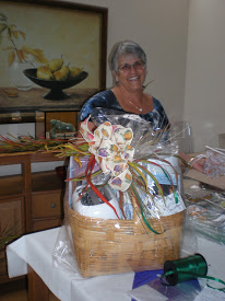Sharon Whelan is ooohing and aaahing our op baskets. We have 67 baskets!