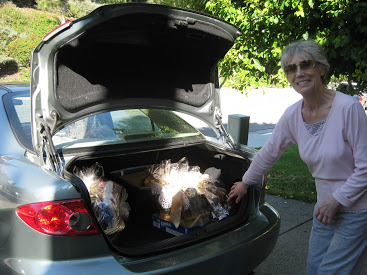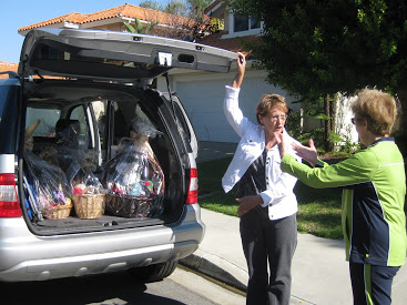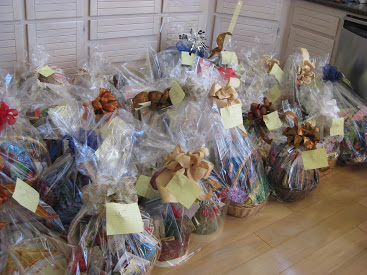 Baskets waiting for pick up. Photographer missed taking pictures of Vickie Janis and Marilyn McNamara, the early birds who came to pick up baskets.