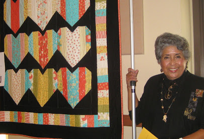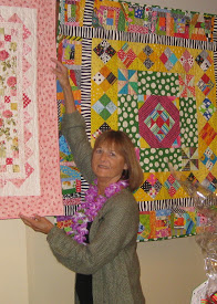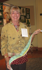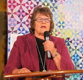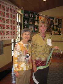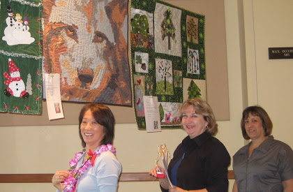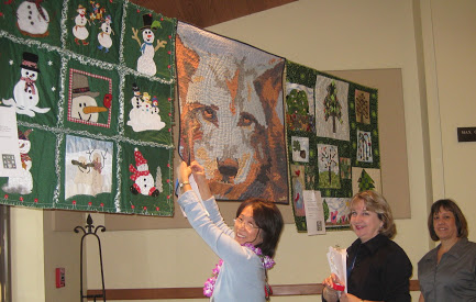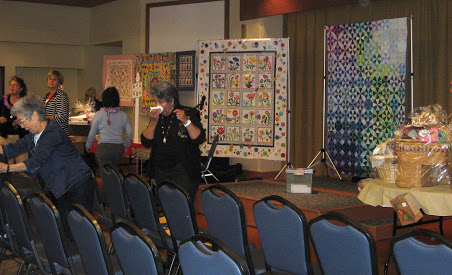 Hiroko Moriwaki, Lyndy Dye, Leslie Butterworth pin labels on the auction quilts.