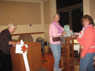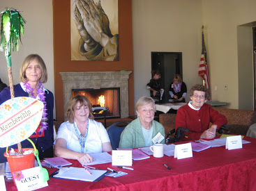 Greeters, Helene Moser, Membership VP, Betty Collins, Barbara Ward, and Bette Bradley.