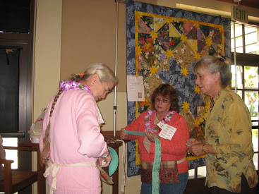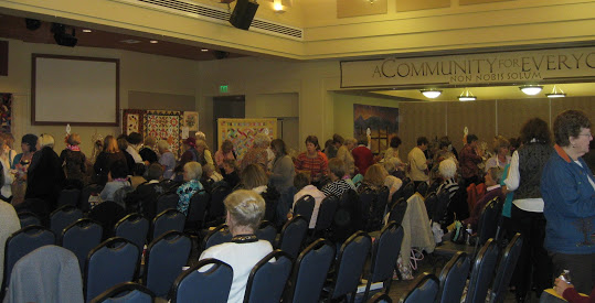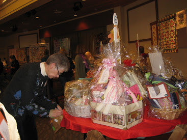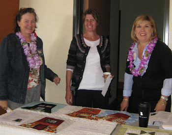 Sue Troise hangs auction quilts. Sumi Maruyama and Hiroko Moriwaki hang labels on auction quilts. Odette Osantowski hangs her contribution, "Falling Leaves from the Rogue". Jane and Tom O'Reily deivered baskets. Hiroko Moriwaki and Sumi Maruyama hang Jan Hirth's "Cabin Batik". Julie Maben helped set up for the auction and sell tickets. Hiroko Moriwaki, Lyndy Dye, Leslie Butterworth pin labels on the auction quilts. Hiroko Moriwaki, Lyndy Dye and Leslie Butterworth. Penny Soldin came to set up the auction. Kathie Bellamy helps to set up the Fest. She publicized the Fest so well, we had a record number of guests. Judy Dunlap helps with set up. Marjie Butterworth, Sue Butsko and Sheri Hill set up. Marcia Faultersack admires the baskets. Carolie Malenius and Marcia Faultersack. Sue Richardson attaches the "chance" bags. The scene. Sue Butsko in charge of ticket sales, instructs Sheri Hill and Diane Collins. Diane Collins. Nancy Ota and Diane Collins. Guest Norma Fiorello. Lyndy Dye and Barbara Trulis. Ticket sellers Julie Maben, Diane Collins and Connie Veldkamp. Greeters, Helene Moser, Membership VP, Betty Collins, Barbara Ward, and Bette Bradley. Irmgard Terbrack greeting guests with programs. Mary Gorelick collecting for Philanthropy. Mary Gorelick, Vivien Hawker and Judy Dunlap at the Workshop table. The scene. President Joann Bishop and Chief Chef LeAnn Goettel. Auctioneer Lyn Mann entertained and gathered bids. Del Thomas and Nancy Ota with Del's new purchase," Ellen's Magical Spring". Auction Cashier Cindy Croucher, Sumi Maruyama and Del Thomas. Chef LeAnn Goettel and crew and many guild members combined their efforts to produce a fabulous lunch. LeAnn's menu: From the top, Bastilla, Greek salad, Orzo and apple cake with cinnamon cream. Back to top Newsletters Speakers and Workshops Philanthropy Membership, Map and Forms Sponsors Block of the Month Patterns Quilting Resources Activity Photos Presidents Quilt Bylaws Board Meeting Minutes General Meeting Minutes Privacy Statement Terms Of Use Site Map