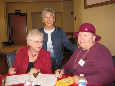 Mary Gorelick, Vivien Hawker and Judy Dunlap at the Workshop table.